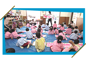 関西圏で約50園、幼稚園や保育園で“楽しく自然に英語が見につく”指導をしているトレーニングを積んだネイティブ講師が担当。