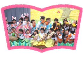 子どもたちは踊ることが大好きです。リトミック活動では明るくのびのびした気持ちで身体を使って楽しく表現 でき、リズム感や感性が育っています。 10月の運動会、12月のお遊戯会でそれぞれが十分に自己を発揮できるように取り組んでいます。