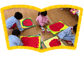 毎月、季節に応じたものを作り、保育室に飾っています。 集中力や表現意欲を高め、想像力や美的情操の芽生えを培うよう指導しています。
