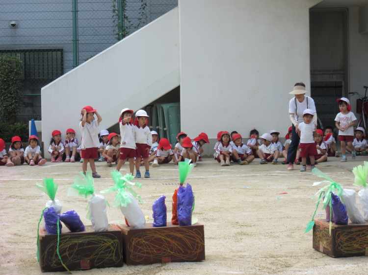 絵の具あそび~赤組~ 今日の2歳児赤組さんは、あか・あお・き・みどりの絵の具を使っておえかきをしました。 自由にイメージを膨らませながら描いていました。 午後からは、牛乳パックを切り抜いたものでロボットごっこをしました。