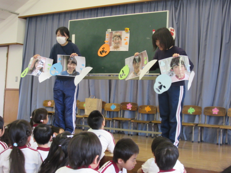 小さかった時の写真をスクリーンに写しだし、クイズをしたり皆でなんでもバスケットをしたり、新聞じゃんけんのゲームをしたりしてとても楽しい時間を過ごしました。